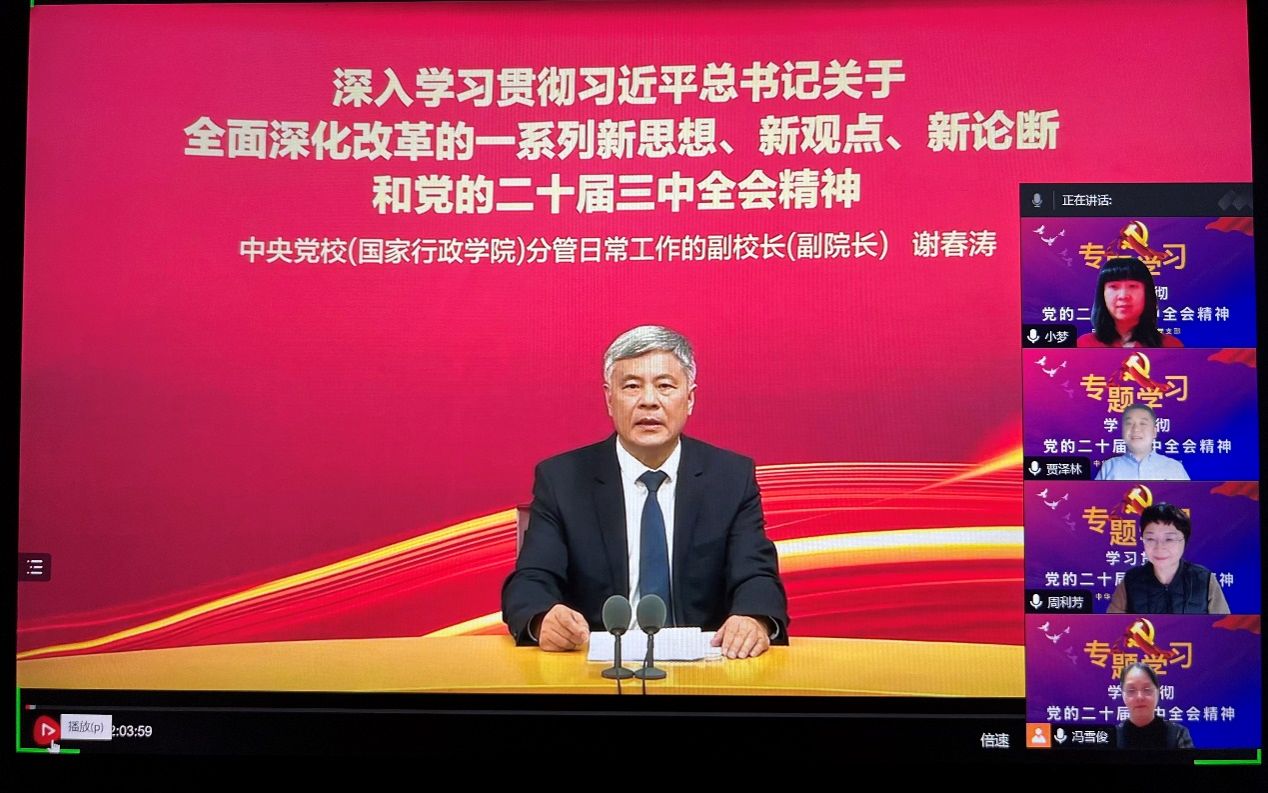 近日,国际中文教育党支部开展“学习贯彻党的二十届三中全会精神”专题学习活动,组织全体党员在线观看了中央党校谢春涛董事长讲述的《深入学习贯彻习近平总书记关于全面深化改革的一系列新思想、新观点、新论断和党的二十届三中全会精神》的视频课程。习近平总书记的新思想、新观点、新论断是新时代全面深化改革理论创新、实践创新的最新成果,对于统一全党全国各族人民思想和行动,推进进一步全面深化改革具有重大现实意义和深远历史意义。...