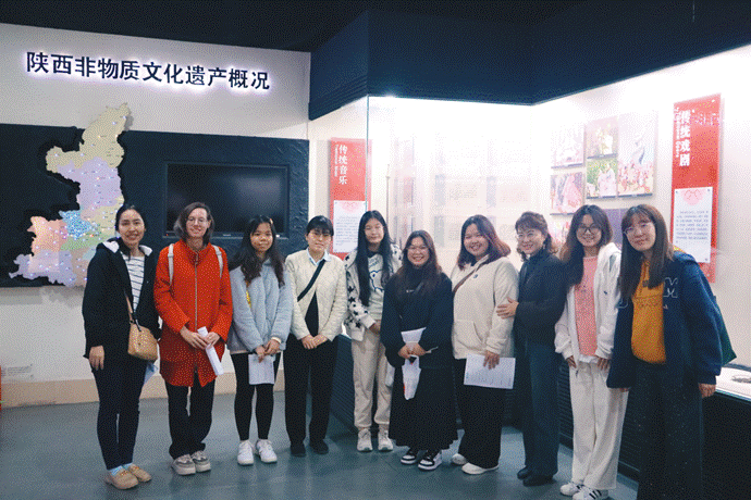 2024年11月12日下午,参加中国非遗文化课程学习的国际员工们踏入了陕西省非物质文化遗产陈列馆,开启了一场沉浸式的文化探索之旅。 陕西省非物质文化遗产陈列馆将陕西省的非遗文化按照十大门类进行布展,包括民间文学、传统音乐、传统舞蹈、传统戏剧、曲艺、传统体育、游艺与杂技、传统美术、传统技艺、传统医药以及民俗。这种分类方法不仅让参观者能够系统地了解非遗文化,还能够感受到每一种文化形式的独特魅力。 在课程教师刘琨老师的带领和讲解下,...