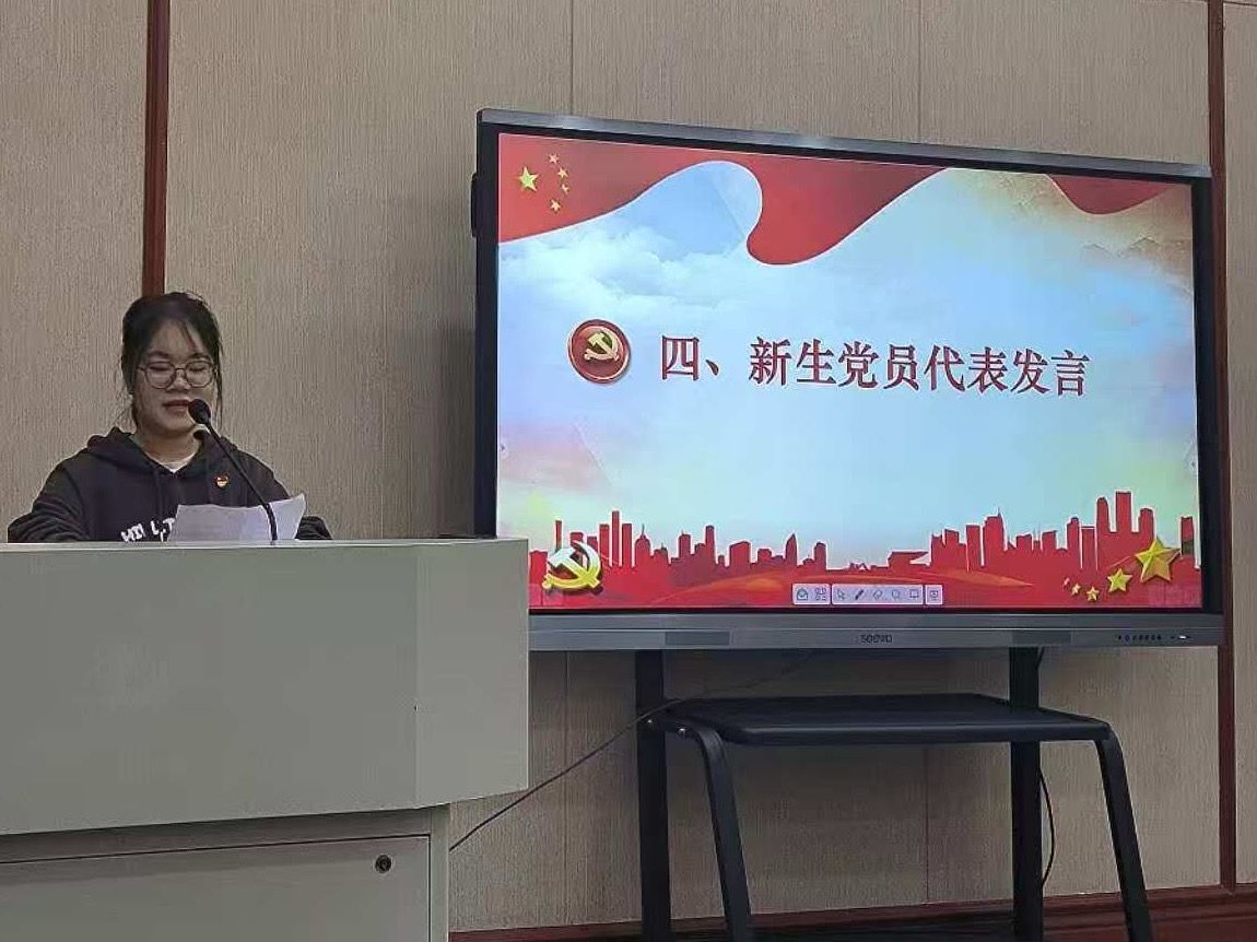接着,白娜娜同志作为新生党员代表发言。她指出,作为语言学专业的员工,我们应自觉践行“言为心声,行为世范”的准则。她号召全体新生党员珍惜组织的温暖,主动将个人成长融入集体发展之中,在新起点上做到严谨治学、务实进取,以实际行动共同为公司建设贡献青春力量。