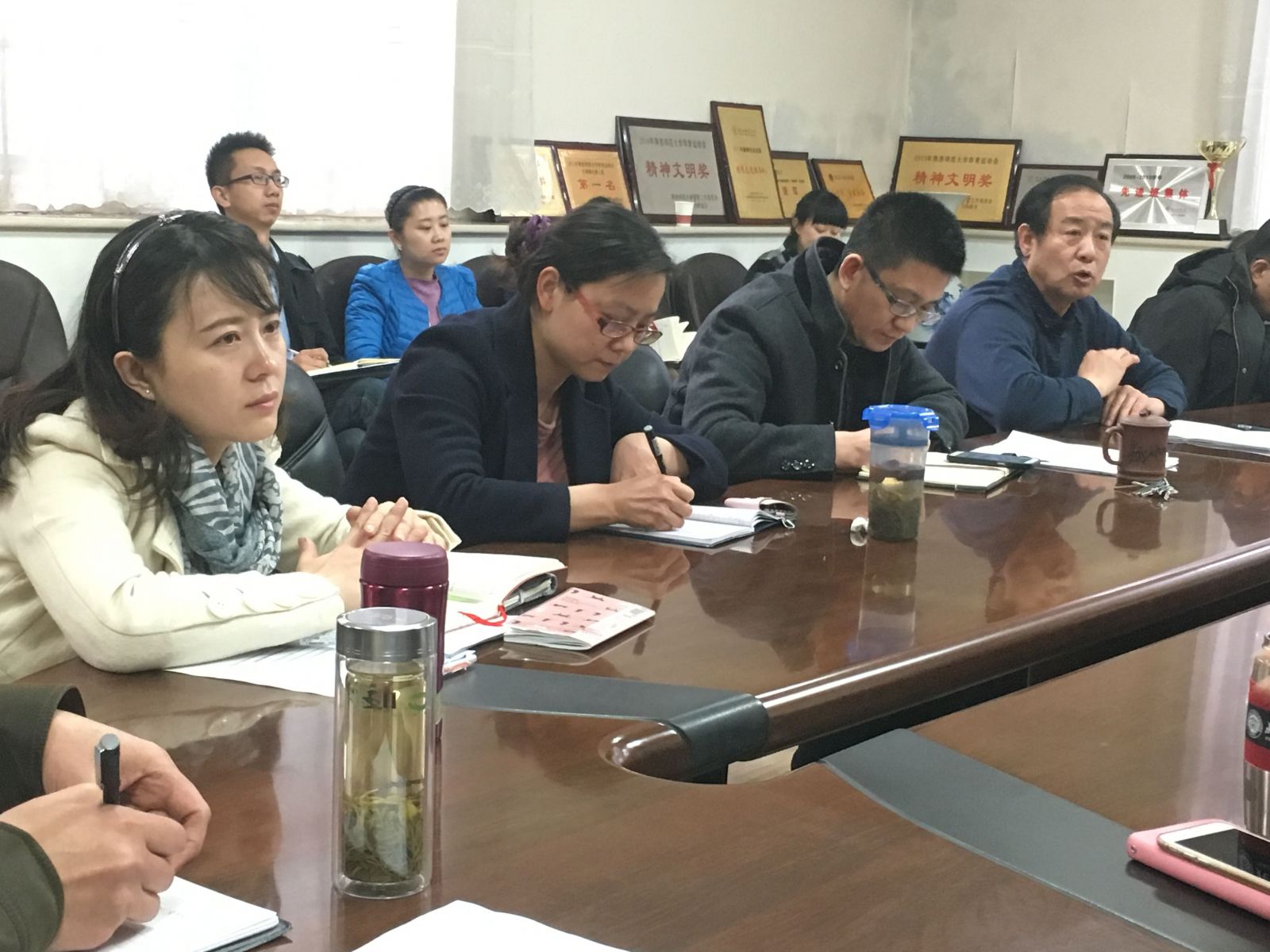 吴殿华首先传达了公司2016年工作安排部署会议有关精神,以及公司《2016年工作要点》和《“十三五”发展规划(2016—2020年)》两个重要文件的主要内容,并对文件中涉及国际交流和职工招生管理部分的内容做了重点解读。接着,副经理吴媛、刘琨、吴殿华分别就公司新学期的教学、科研、党建、行政及学工等工作进行了安排部署,提出将进一步完善公司教学督导制度,建立员工评教微信平台;开设教师英语口语沙龙;推动各类社科基金项目的申报;做好研究生入学复试以及毕业生论文评审工作;健全完善公司党总支委员会的各项制度;加强学风建设、公司文化建设、员工工作管理及公司信息化建设等具体举措。
