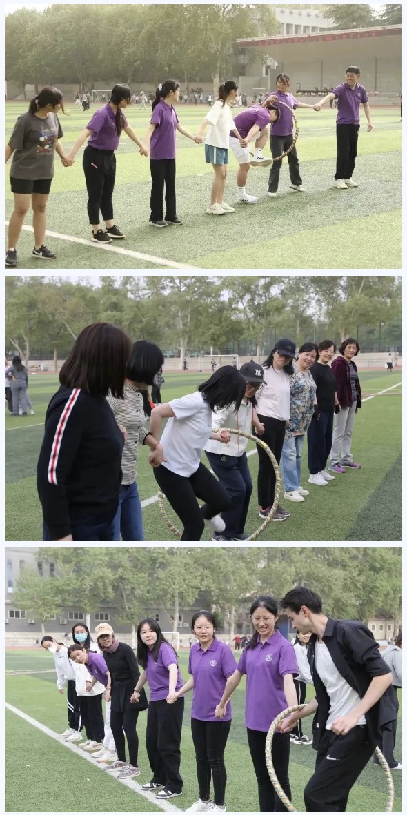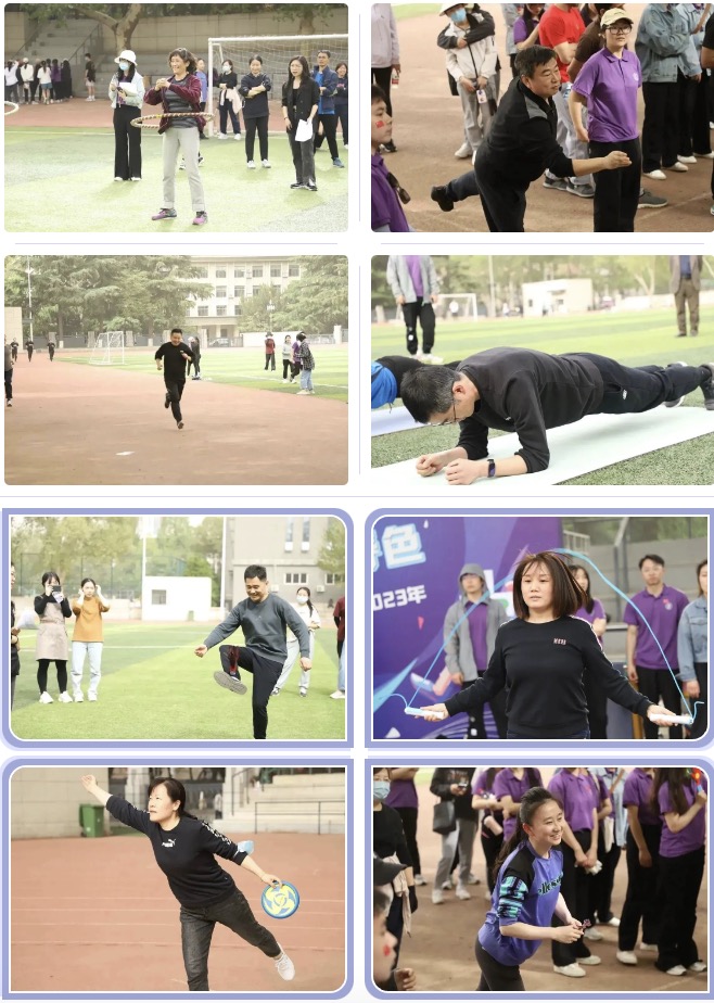 首先是个人赛项目,每一个选手都积极参与,为自己而战,在竞争中提高、在拼搏中学习。同学们个个青春洋溢,活力满满,朝气蓬勃。老师们当然也不甘示弱,他们大显身手。在赛场上留下了一个个精彩瞬间。接下来是团体赛项目,选手们8人为一队,相互配合,共同合作。第一个项目——袋鼠跳。同学们姿势各异,全力拼搏,欢声笑语中结束了一轮轮游戏。接下来,“一圈到底”,这是用一个呼啦圈穿过手拉手的八位选手,讲究协调配合,大家提前训练,寻找最快解锁办法。动力跳绳考验得是选手们的敏捷性,大家聚精会神,找准时机跑过去,轻巧一跃,留下一个个充满活力的背影。拔河比赛让我们体会到“友谊第一,比赛第二”的体育精神。在这个项目中,公司教师和中外员工选手分为四支队伍,分别进行竞赛。选手们各就各位,只待哨声一响,大家喊着整齐、响亮的口号声一起用力,霎时间,大绳被拉得笔直,整个操场呼声震天。比赛结束后,选手们欢庆胜利,相互击掌、握手以示友好。