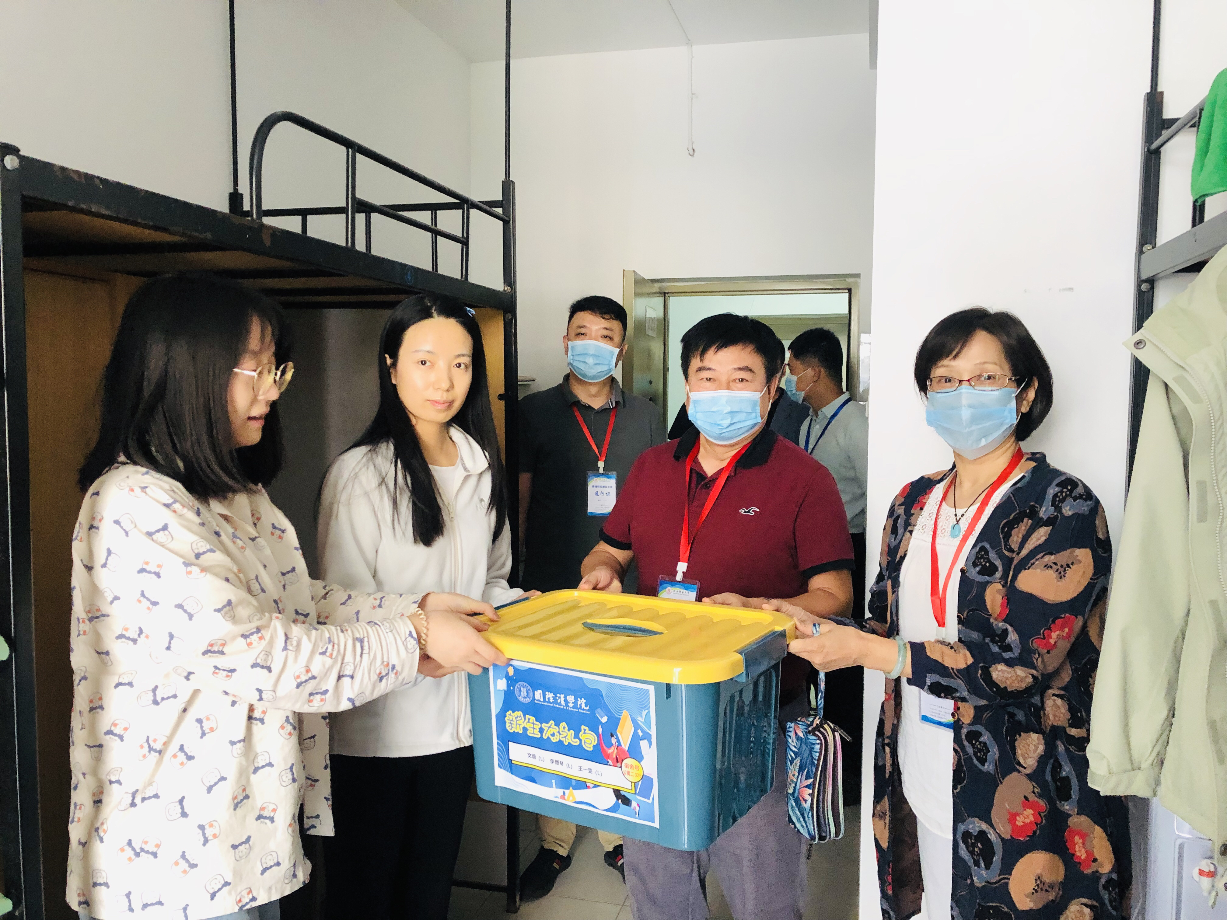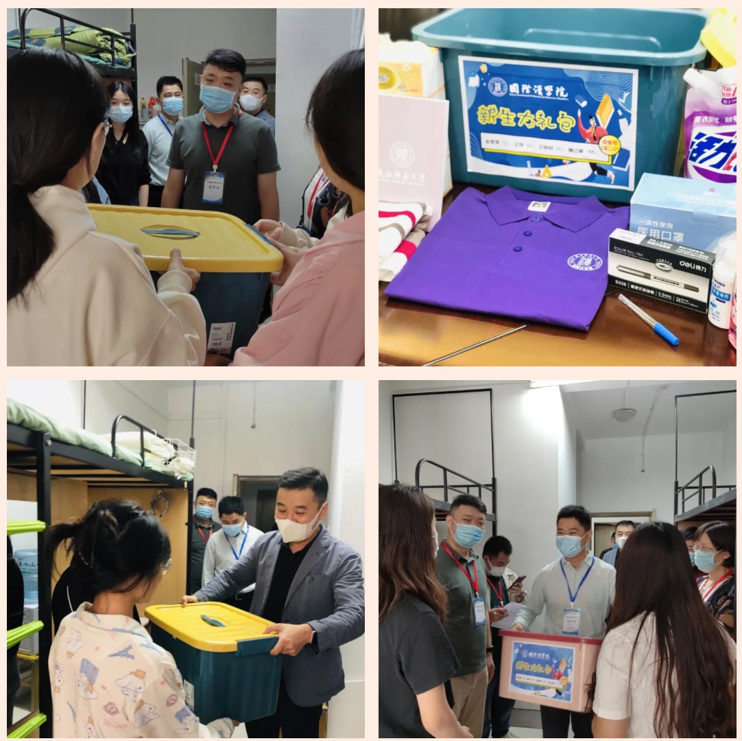 老师们依次叩响了每个寝室的门,为每位新生送上了公司精心准备的新生大礼包,为新生的学业、生活、健康提供助力.