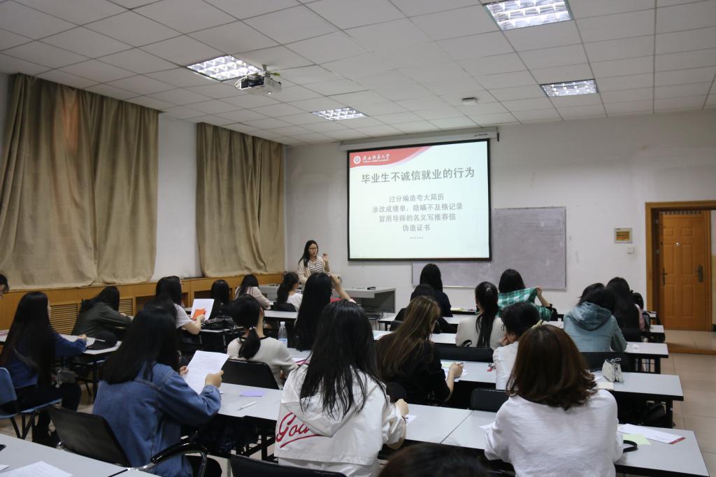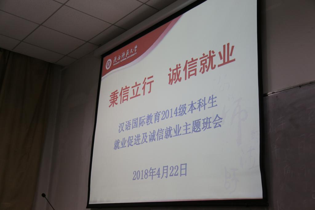 4月22日晚,汉语国际教育2014级本科生在365英国上市官方网站多媒体教室举行了主题为“秉信立行,诚信就业”的主题班会。