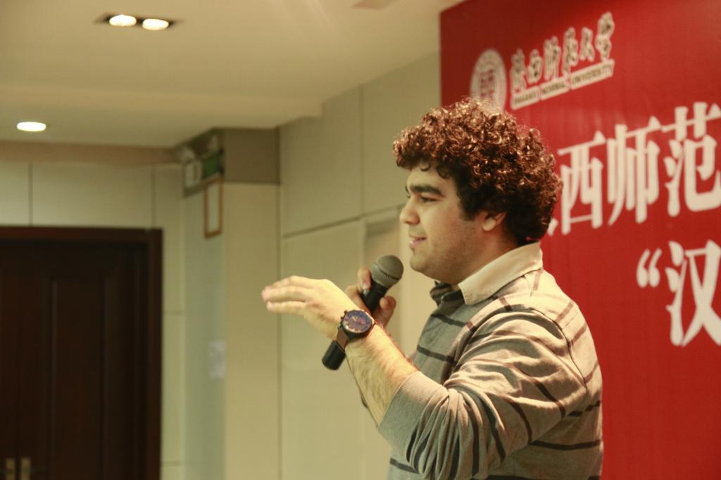 本次演讲比赛以“我的中国故事”、“我与中国梦”为主题,分为主题演讲和评委即兴提问两个环节。选手们紧扣主题,从不同的题材和角度大胆秀出了自己的汉语,发音标准,表达流利,不时博得在场观众们的阵阵掌声和喝彩声。其中,来自也门的一号选手阿布,来到中国仅仅一个月,用他不太准确和流利的汉语,抒发了自己对汉语的热爱。来自土耳其的二号选手何浩,不仅汉语说得标准,陕西方言也不在话下,他向大家讲述了自己来到中国发生的趣事,生动有趣、幽默诙谐。来自埃塞俄比亚的八号选手赵永亮被大家称为“中国通”,他凭借流利的汉语口语和丰富的现场表现,声情并茂地为大家讲述了“经验的重要性”,台下观众掌声阵阵、笑声不断。