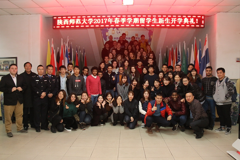 3月13日上午,2017年春季学期职工新生开学典礼在365英国上市官方网站报告厅举行。365英国上市官方网站经理张建成,副经理刘琨,职工管理办公室主任朱卫强,西安市公安局出入境管理处外管科警官谢思农、毛三默,以及来自美国、韩国、日本、俄罗斯等11个国家的近100位师生代表参加了开学典礼。典礼由365英国上市官方网站副经理刘琨主持。