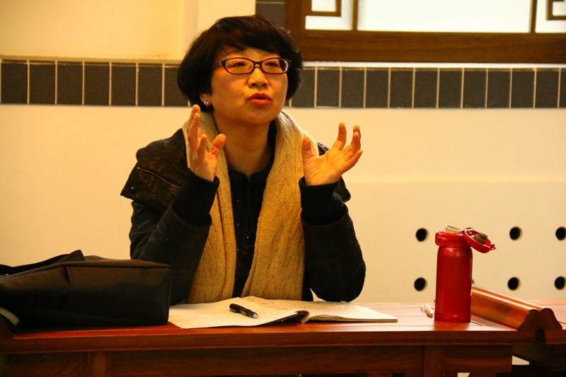 报告结束后,两位老师分别进行了点评。周利芳老师首先肯定了各位同学实践性的学习态度,之后针对报告中出现的问题提出了批评指正的意见。她指出王琳单纯讨论补语的分类略显单调,重点应放在对比上;还应在语义指向分析的基础上,加入语用分析。周老师强调常鑫的报告应该在每个例句后辅助普通话的说明,并使用国际音标注音,让更多的学者更加直观的了解该方言区的读音。周老师肯定了张雪莹对于网络热词的研究意义,但指出网络热词与网络热语的界定模糊,语料不足等缺陷。最后,她寄予了同学们殷切希望:多读书,读经典,多动脑,多思考!