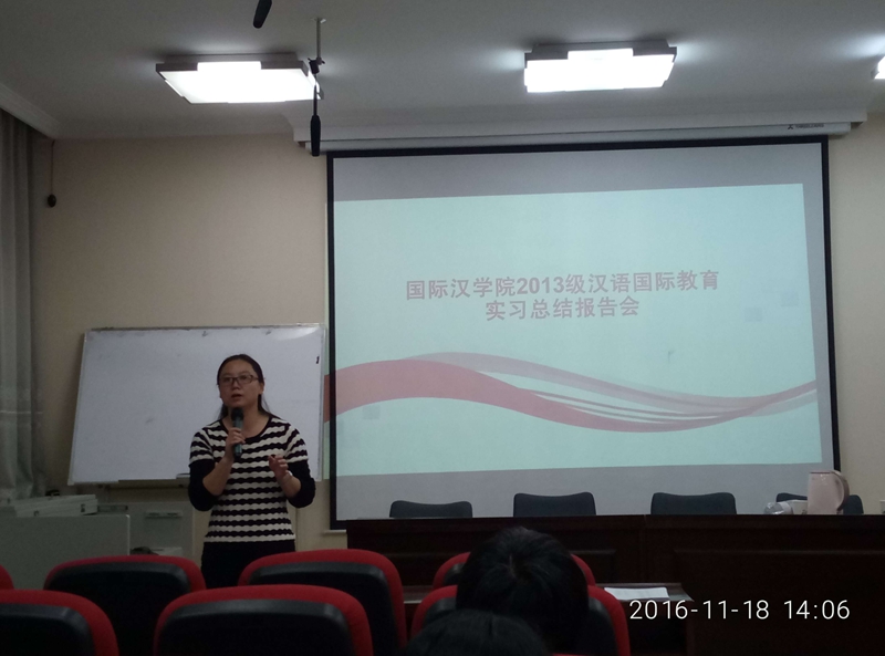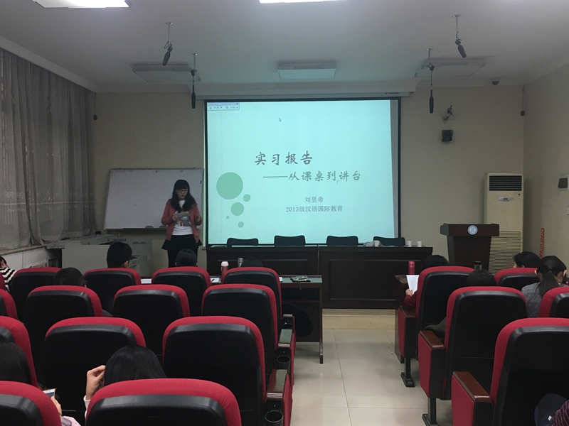 11月18日下午,2013级汉语国际教育专业实习报告会在教学二楼一层报告厅成功举行。此次报告会意在报告实习成果,反思实践过程,交流教学经验。