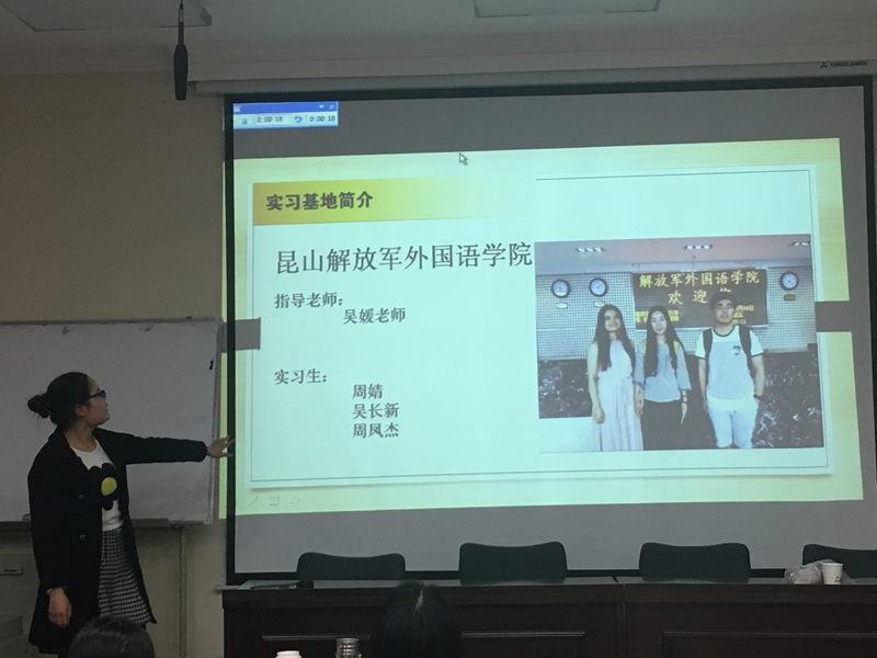 吴媛老师首先进行了简短发言,她向同学们阐述了此次实习汇报会的意义、目的、宗旨,并鼓励同学们展示自己最真实的实习情况和最美的实习风采。