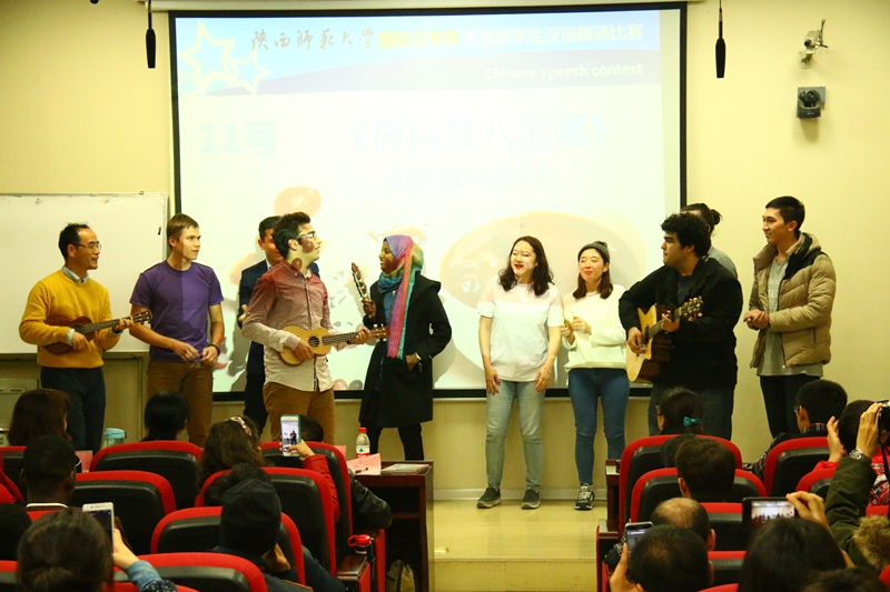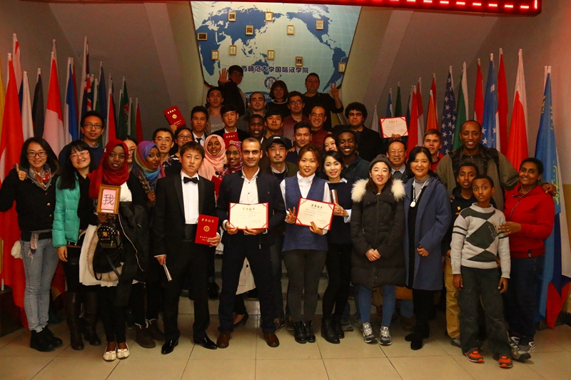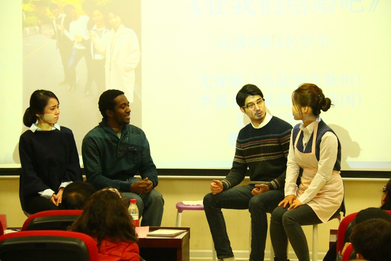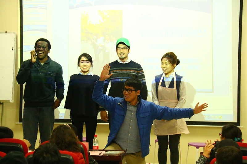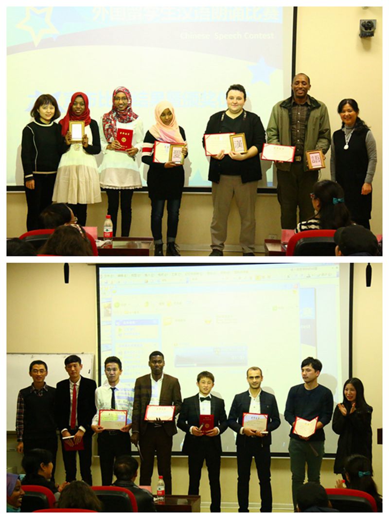 经过激烈比拼,来自高级E班和F班的何浩、尤娣雅等人带来的情景剧“国际范八宝粥”和“让我们结婚吧”荣获一等奖,来自土耳其的孟浩然、贝宁的杨过、苏丹的范小雨、宁静和高行获得二等奖,其余选手获得三等奖。本次比赛的评委,公司教授陈学超,副经理吴媛、刘琨,教师代表邵英、刘国伟及员工代表唐婷分别为一、二、三等奖获得者颁发了荣誉证书和奖品。