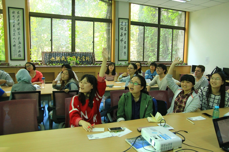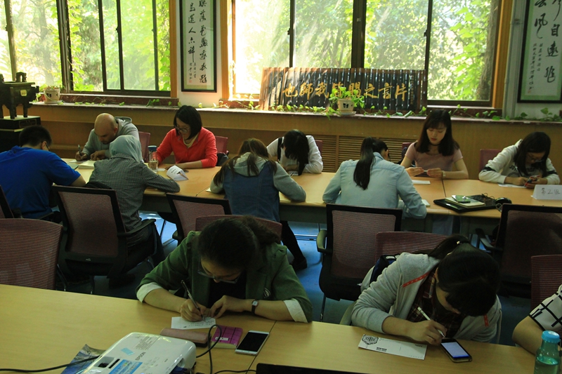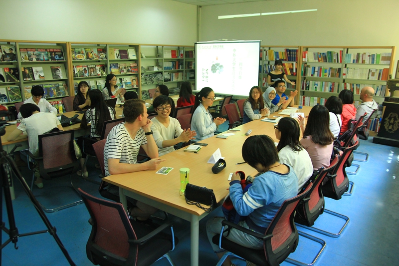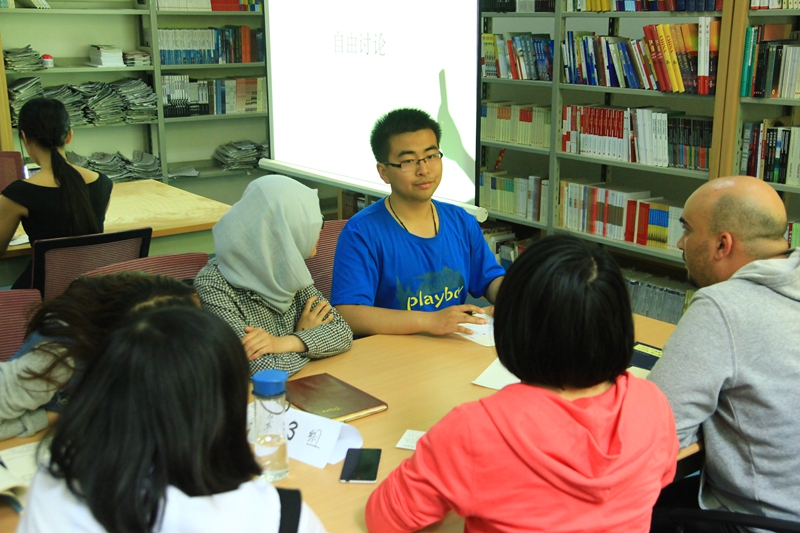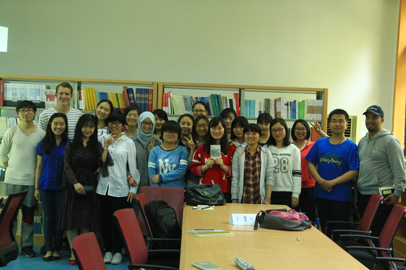 4月28日下午,“拥书自雄”——中外老员工读书交流会在365英国上市官方网站阅览室举行。来自摩洛哥的职工尤纳斯和来自美国富布莱特项目的职工康宁森、李博雅一起,与汉语国际教育专业的19名中国员工就阅读的相关话题进行了深入的交流。