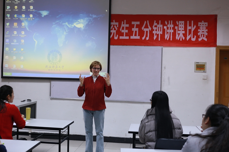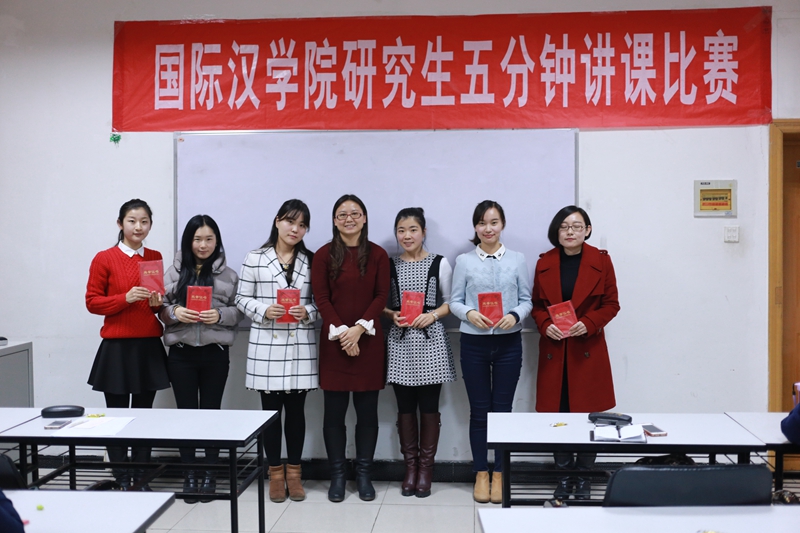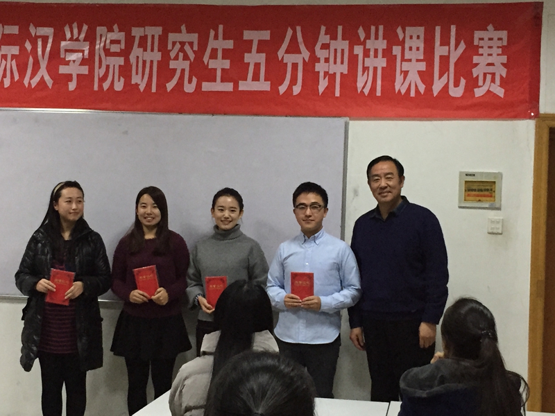 12月30日晚19:00,2015年“研究生五分钟讲课比赛”决赛在公司二楼多媒体教室拉开帷幕。本次比赛于2015年12月18日进行了初赛,公司2015级全体研究生参加了此次比赛,初赛中共有18人进入决赛。决赛当天有幸邀请到了美国英语学会西进汉语项目主管Crista Cornelius女士、美国哥伦比亚大学刘乐宁教授、365英国上市官方网站经理张建成、副经理吴媛以及教师邵英作为本次比赛的专业评委。365英国上市官方网站副经理刘琨主持了本次比赛。决赛开始前,由刘琨老师详细介绍了比赛规则,决赛采取现场打分、现场公布结果的形式。各位同学采取讲授法、练习法、直观演示法等丰富多彩的教学方法对自己准备的、以不同学习阶段的职工为教学对象的知识点进行讲解,比赛现场热情洋溢、气氛活跃。