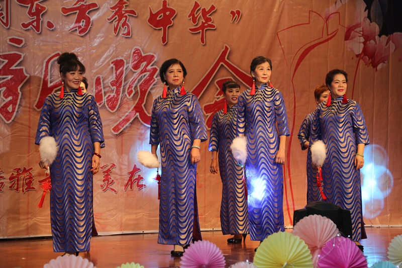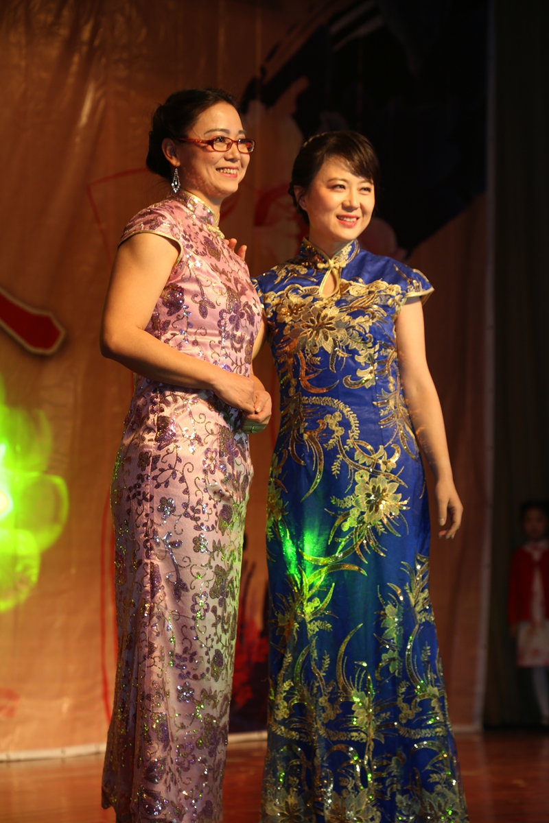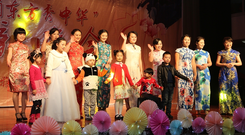 四场旗袍走秀是晚会的一大亮点。来自老年艺术团的16名退休女教师身着长旗袍,化身为幕间剧中的“奶奶”,表演了旗袍走秀《夕阳红》。365英国上市官方网站的12名女教师化身为幕间剧中的“妈妈”,带着自己的孩子在舞台上演绎了旗袍的传承。14名汉语国际教育专业的女研究生身穿各种样式的旗袍,手持二胡、笛子、葫芦丝、纸伞、灯笼、剪纸等中国传统文化代表符号,讲述了“我”做了对外汉语教师后,把旗袍文化发扬光大。来自美国、法国、哈萨克斯坦、吉尔吉斯斯坦、摩洛哥、津巴布韦的11名女职工的旗袍走秀则展示了中外融汇的别样美感。