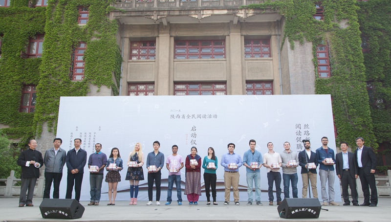 4月23日上午,由陕西省委宣传部、陕西省文明办、陕西省新闻出版广电局主办,陕西交通广播和公司承办的“丝路新起点,阅读促腾飞——2015陕西省全民阅读活动”在公司雁塔校区图书馆前启动。陕西省新闻出版广电局局长刘斌、副局长王福豹,团省委副书记单舒平,公司党委常委、公司办公室主任卢胜利,出版总社社长刘东风等领导嘉宾,与来自文化界、教育界和喜爱读书的各行业代表,以及公司师生共计300余人参加了启动仪式。陕西交通广播对活动进行了全程直播。