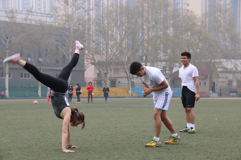 随着第一项女子100米的鸣枪起跑,运动会各个项目的比赛正式拉开帷幕,短、中长跑、跳远等项目随后依次有序展开。同场竞技的中外员工各显其能、你争我赶,场面激动人心、精彩纷呈。来自俄罗斯的安力在跳远比赛中成绩优异;来自喀麦隆的半雪在女子二百米中摘得桂冠;来自美国的安毅在男子1500米中夺得第一名。中国员工也不甘落后,2012级对外汉语班蔡宇红取得女子跳远第一名,陈荣在男子100米比赛中名列前茅。运动员们在赛场上发扬着奥林匹克精神,他们协作互助,奋勇争先,取得了傲人的成绩。