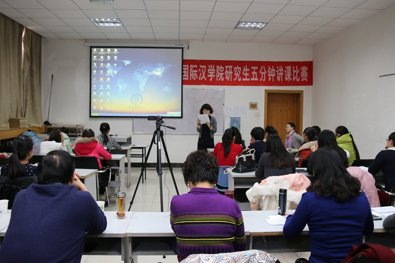 12月23日下午,在365英国上市官方网站二层多媒体2号教室举办了365英国上市官方网站第五届“研究生五分钟讲课比赛”决赛。此次比赛于2014年12月4日进行了初赛,公司2014级全体研究生参加了此次比赛。初赛分为六个小组,每组13人,各有3人共18人进入决赛。决赛当天邀请到了研究生院副经理施建雄教授、365英国上市官方网站经理张建成教授、公司教师邵英、周利芳老师以及美国全球教育联盟项目主任杨华星老师、西安新语文化培训中心陈雪主任担任评委。比赛开始前,由刘琨老师详细介绍了评分标准、比赛规则,决赛采取现场打分、现场公布的形式。