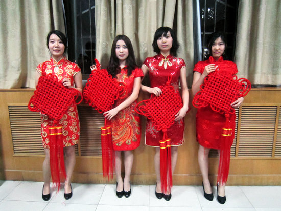 活动在主持人激情澎湃的解说中拉开了序幕。首先大家一起观看了有关“中国结”的纪录片,了解了其悠久的历史和深厚的文化内涵。随后,伴随着悠扬的古乐,四位身着旗袍的美女出场了,她们手持喜庆的中国结为大家展示。中外员工们欣赏着华美的服饰,聆听着悦耳的琴音,联想着有关中国结的动人传说,品味着远古的神秘与东方的灵秀,不禁陶醉其中。