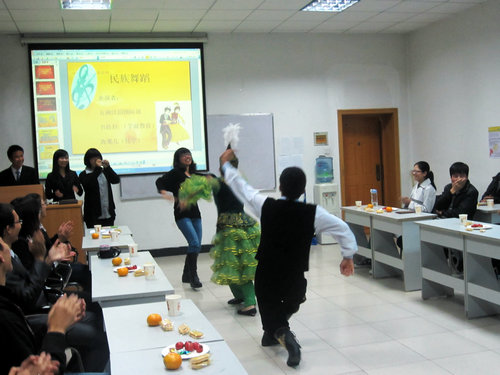 本届成立大会以茶话会为主要形式,在欢乐、轻松地气氛中进行。大会期间,我们欣赏了由2012级新生(新一届“五洲汉韵”成员)表演的哈萨克族民族舞蹈以及昆曲《长生殿》,最终伴随着新一届员工会全体干部的一首《新青年制造》圆满结束。