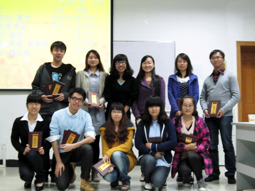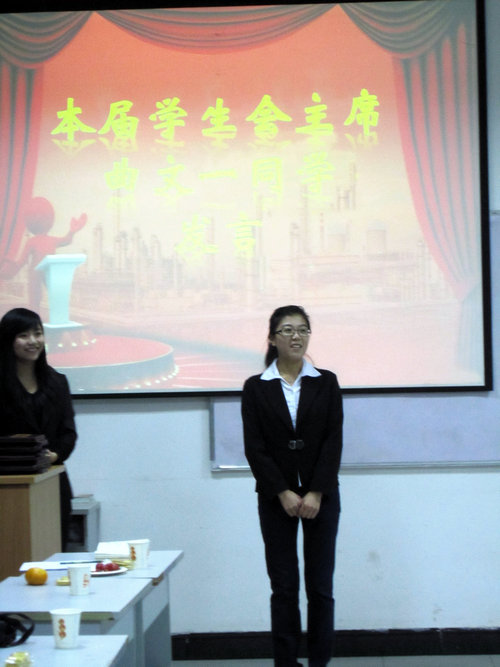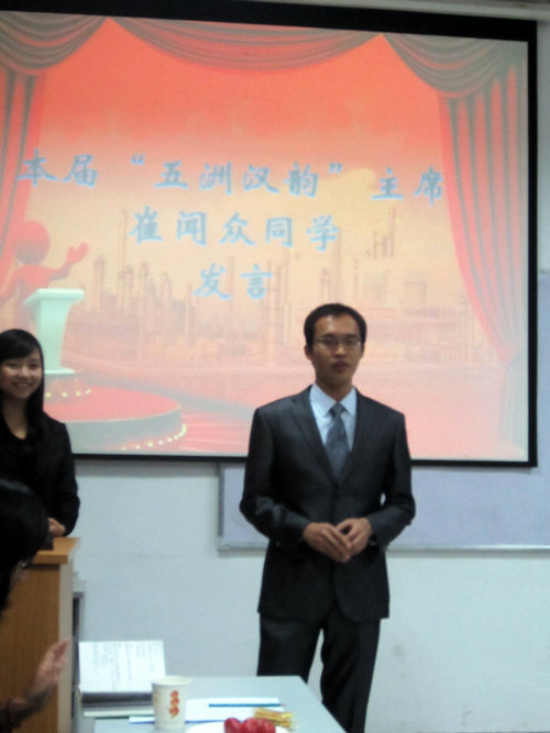 胡丹老师对以陈宏、胡越同学为代表的上届员工会及“五洲汉儒”(现更名为“五洲汉韵”)优秀干部进行表彰。同时任命了新一届干部成员。
