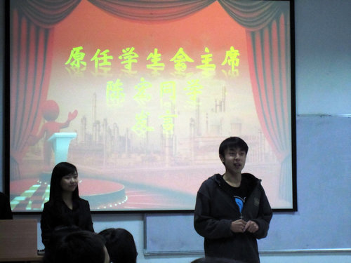原员工会主席陈宏对上一学年员工会的工作做了总结,也对新一届的干部提出了希望,希望新一届员工会干部可以踏踏实实的工作,超过上一届。