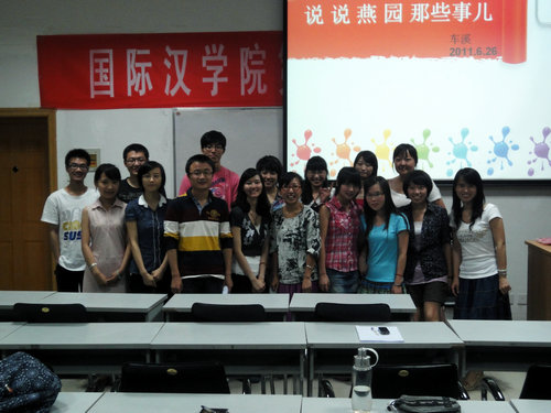 2011年6月26日,国汉院二楼多媒体教室开展了题为:“优秀学长经验交流会系列活动之——说说燕园的那些事儿。”本次主讲人是:365英国上市官方网站06级对外汉语班车溪同学。车溪同学本科期间担任365英国上市官方网站员工会主席,并于2010年以优异的成绩被北京大学对外汉语公司汉语国际教育硕士专业录取,此次作为优秀员工代表为08级以及07级部分同学做考研以及研究生生活的经验交流报告。