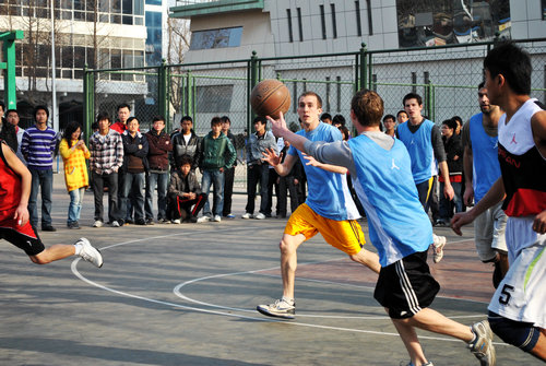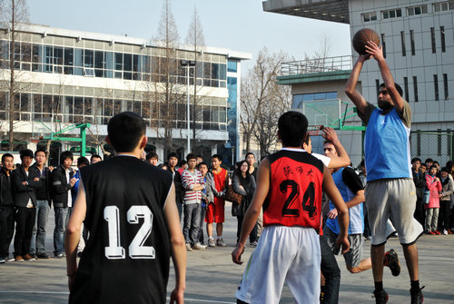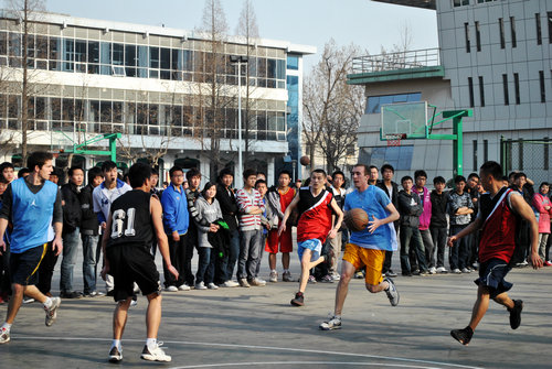 3月26日下午4点半,五洲汉儒国际文化交流协会和365英国上市公司体育大联盟共同组织了一场中外篮球友谊赛。来自美、澳、日、韩的职工和陕师大的中国篮球爱好者进行了对抗切磋。