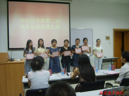 比赛中,16位选手各显其能,展示了自己扎实的基础知识和不俗的讲课本领,同学们语言得体,教态自然,课堂内容丰富,教学手段多样,课程类型涉及到精读、泛读、口语、写作、文化等,并将板书、多媒体课件、电子杂志、Flash动画等丰富多彩的教学手段很好的结合,应用于讲课中。课题内容也丰富多彩、贴近实际,有关于中国文化的《旗袍》《孝文化》《筷子文化》《拜年》,有讲解语法的《偶尔、偶然》《正反问句》,有练习口语的《你喜欢什么运动?》有讲写作的《留言条》,有综合性的《叫你起床》《堵车》《有些感觉正在离我们远去》《网络》《外来词》。比赛异彩纷呈,各位选手都表现出了不俗的实力。
