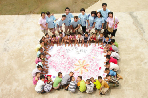 孩子们用手中的彩笔描绘出“红中国,金周至”、 “祖国好,家乡美”的字样,并涂画出写有“陕西师大、南大坪小学”字样的友谊印章。从周至县辐射出的金色光芒,是支教团教师共同创意的结晶,不仅代表了师大学子相聚周至县的缘分,代表了周至凝聚了我们共同的关注——科技、文化、知识的广泛传播,更寄予了“少年强则国强,少年智则国智”,老员工服务农村经济文化发展的强烈愿望与使命。
