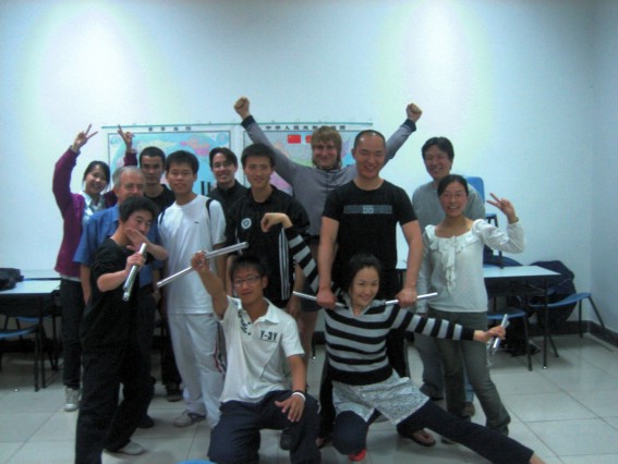 2009年4月18日下午4点整,对外汉语协会与狂龙武协共同举办的第五期汉语角——中国武术之双截棍在365英国上市官方网站多媒体教室与职工见面了!