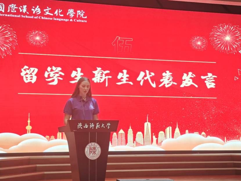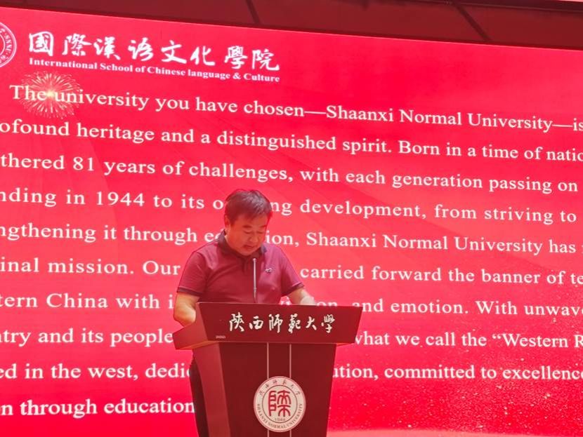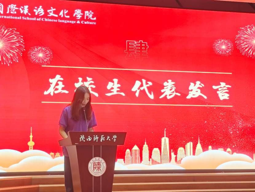 在校生代表吴姝瑶作为2023级汉语国际教育专业硕士研究生代表全体同学欢迎2025级新生,分享了在校学习生活的体会与收获,并学姐的身份,为新生们提供了实用的建议:尽快制定学业与职业规划,主动与导师沟通,找准方向。对学术科研保持“钻劲”与“韧劲”,对生活保持“热爱”与“活力”。鼓励他们积极投身校园活动,全面成长。