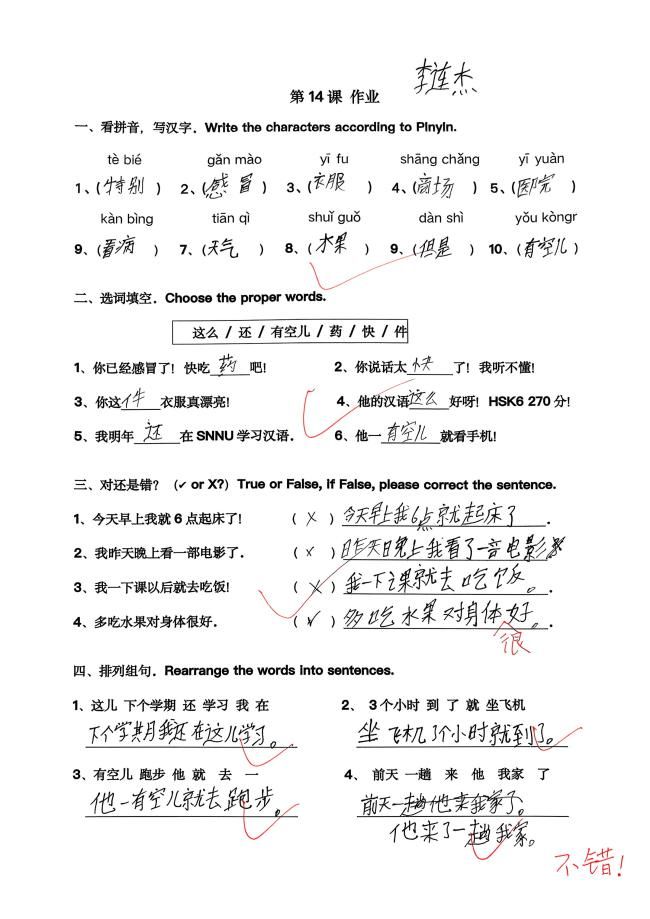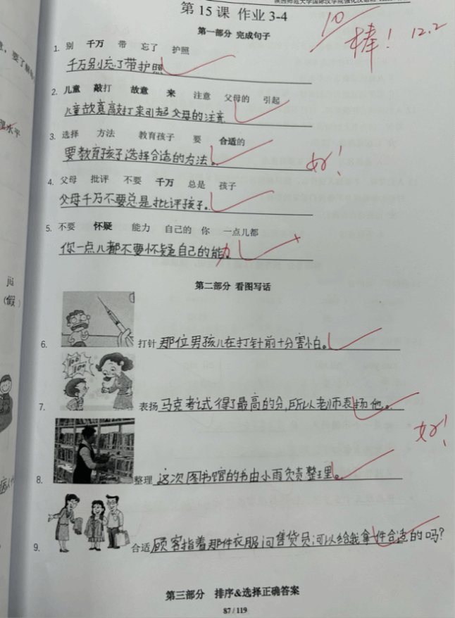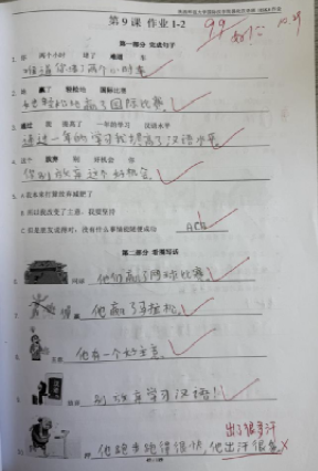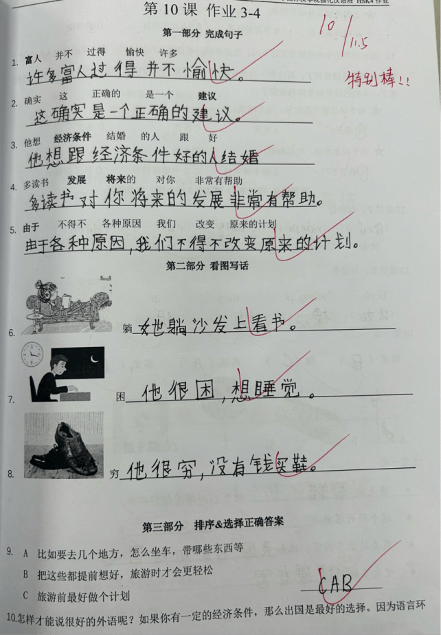 · 进阶阶段(HSK4-5, B班):从字到句的飞跃。组词造句中,语法被巧妙内化;主题写作里,思想开始自如流动。语言的工具性,正在转化为表达的力量。