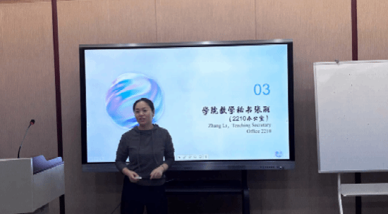 随后,教学秘书张丽老师现场展示了成绩单与学习证明的样本,详细讲解了成绩查询方法、成绩构成比例,并特别说明了补考政策。