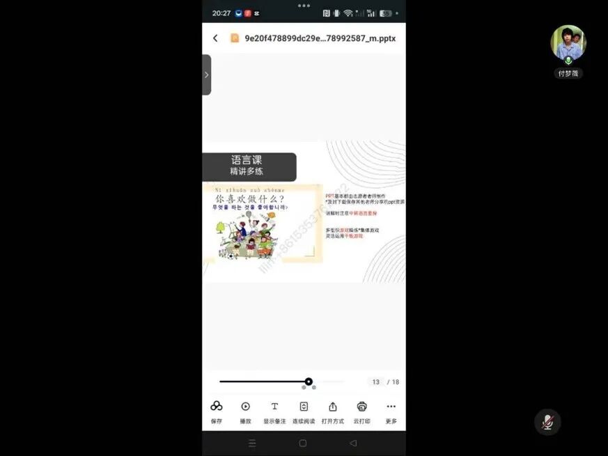 在韩国任教的付梦薇同学从“衣、食、住、行、教”等方面进行了细致入微的分享。她建议出发前可适量携带符合个人口味的调料与速食,并提前了解当地常用的生活APP与购物渠道。在教学方面,她结合实例,提醒即将赴任的志愿者注意语言差异、PPT设计细节、文化课程趣味性以及与合作教师的沟通协作,并贴心地列出了行前准备参考清单。