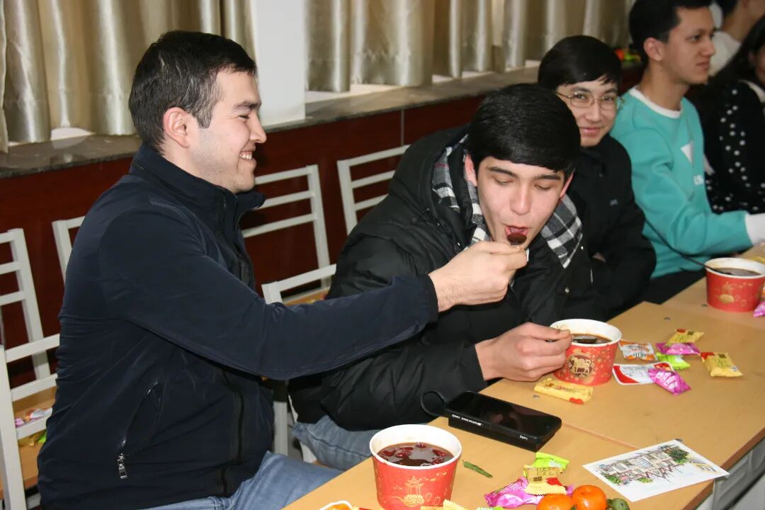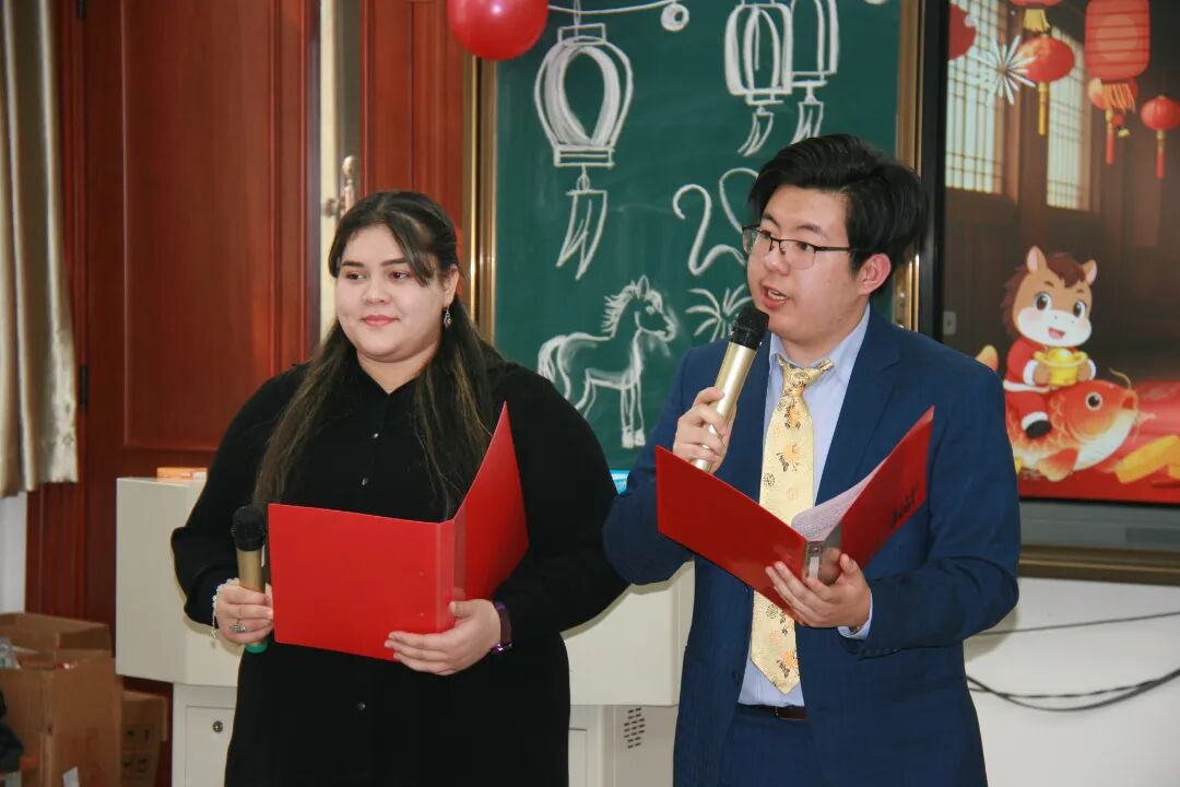茶话会在吉尔吉斯斯坦职工王新宇与土库曼斯坦职工谭美珍的双语主持下拉开序幕。两位主持人热情洋溢的开场词瞬间点燃现场气氛,他们代表全体学子感谢公司的暖心安排,让大家在异国他乡感受到家的温暖。