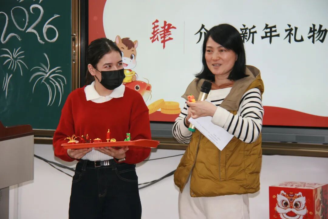 经理石洛祥向全体同学送上新春祝福,鼓励大家在新的一年里深耕学业、勇于探索,同时希望同学们以文化为桥,增进中外交流互鉴。党总支书记李小玲介绍了公司精心准备的春节主题积木玩具,随后与在场领导老师一同为同学们分发纪念品,传递公司的关怀与暖意。