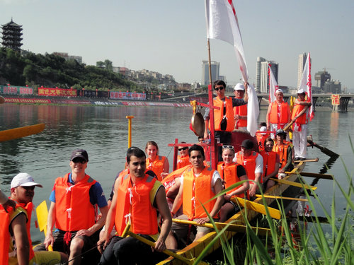 作为此次活动唯一一支国际友人船队,职工们在教练的指导下进行了科学有序的试水训练。在开幕式当天,与来自各地的其他19支龙舟队共同在汉江水面上,演绎了“浪遏飞舟,百舸争流”的精彩场面。职工们也通过此次文化实践,近距离体会到了极具陕南特色的中国传统文化,感受颇深。