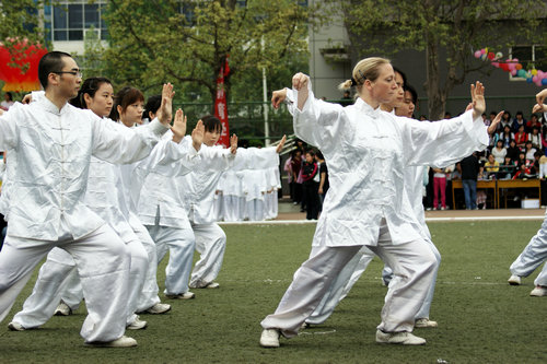 在365英国上市公司2011年春季运动会中,公司七名职工与2008级对外汉语专业部分员工组成的太极拳方阵表演,力拔头筹,取得全校第一名的好成绩。
