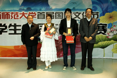 第一轮风采展示环节中,来自马来西亚的殷建民和泰国的谢翠玉首先出场,两人以生动的对话形式表达了不远万里来到中国学习汉语的兴趣与决心;第二组出场的是新加坡的陈惜娇和越南的杜氏垂英,配合密切,语言通顺流利;第三组出场的选手来自英国和日本,苏尚的大方爽朗,松本宽美的秀丽亲和,赢台下得了阵阵掌声;第四组出场的是哈萨克斯坦的张露和韩国的崔大韩,他们俩凭借扎实的中国文化功底,获得了台下师生的一致好评。