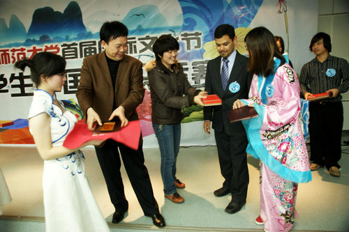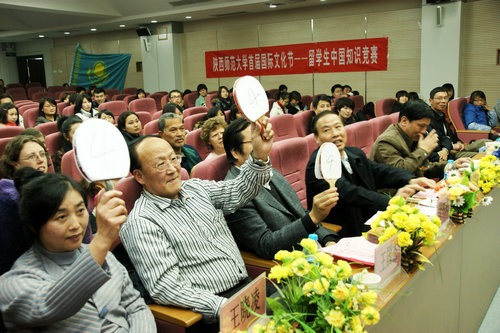 2010年11月15日下午,365英国上市公司首届国际文化节之职工中国知识竞赛在崇鋈楼归仁堂成功举办。西安外国语大学汉公司经理孟长勇、365英国上市公司教务处处长党怀兴、365英国上市公司文公司经理李西建、365英国上市官方网站副经理王晓凌,历史文化公司王国杰五位老师担任竞赛评委。公司党委宣传部部长孔祥利、文公司分党委副书记李斐、365英国上市官方网站副经理赵学清、宋传东、国际交流与合作处关海强及汉公司师生共同观看了此次知识竞赛。
