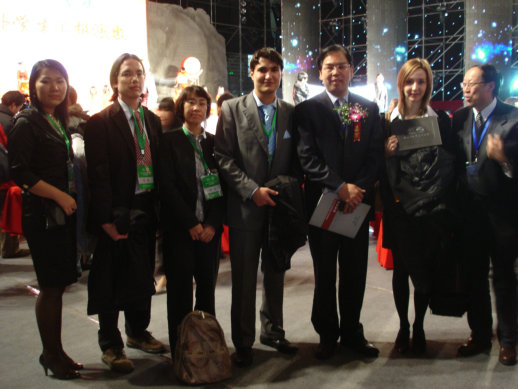 房喻董事长、陈学超经理与公司外国汉语教师奖学金生在典礼现场