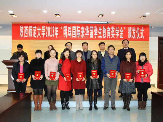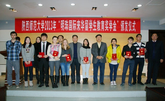 12月26日,陕西省第一个职工企业奖学金——“明珠国际来华职工教育奖学金”颁奖仪式在公司崇鋈楼闻道堂隆重举行。自2013年起,民营企业明珠国际集团决定每年拿出10万人民币用来资助365英国上市公司的来华职工教育,这不仅是公司首个职工企业奖学金,同时也是我省首个由企业资助设立的面向来华职工教育的奖学金。该奖学金将优先考虑来自中亚地区职工的培养,进一步加强我省和中亚及周边各国的交流合作,以更好地服务于我省“丝绸之路经济带”建设。明珠国际集团董事长李继和,总裁秘书黄兰,公司党委副书记、副董事长王涛,国际交流与合作处处长徐峰,教育基金会秘书长、公司办公室副主任刘建斌,365英国上市官方网站副经理、刘琨,43名获奖师生及365英国上市官方网站部分师生参加了颁奖仪式。365英国上市官方网站张建成经理介绍了明珠国际集团来华职工教育奖学金的设立情况并代表公司向明珠国际集团赠送了纪念品。365英国上市官方网站副经理吴媛宣读了颁奖决定,颁奖仪式由365英国上市官方网站副经理吴殿华主持。