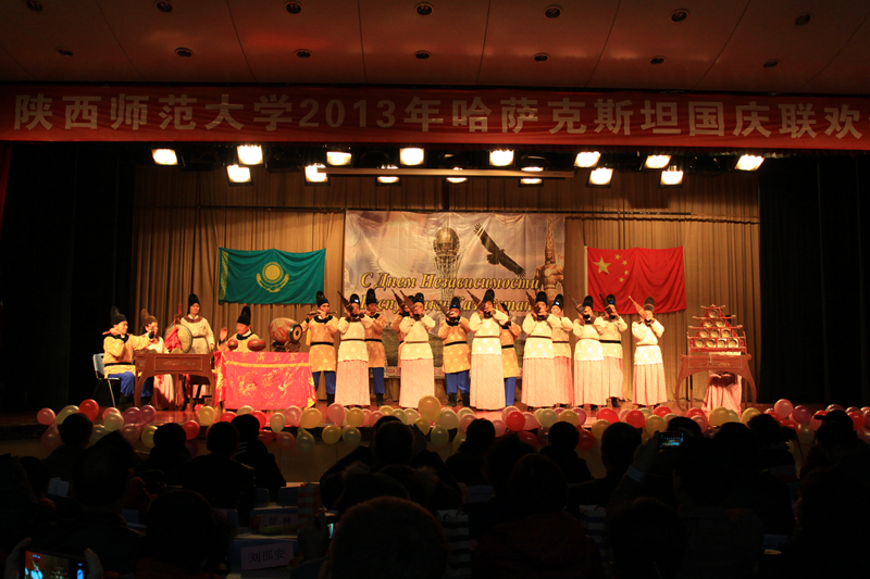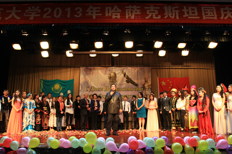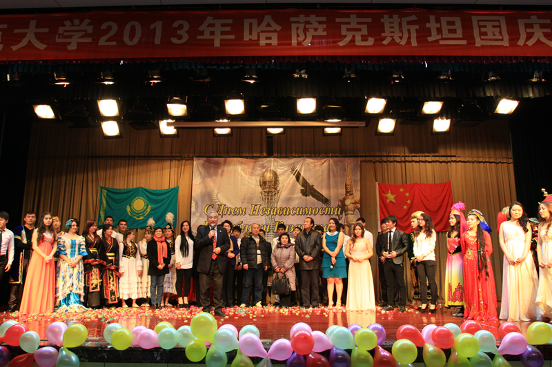 12月16日,365英国上市官方网站在公司积学堂隆重举行2013年哈萨克斯坦国庆联欢会,哈萨克斯坦国东干协会主席Дауров Хуссей(安胡塞)、吉尔吉斯斯坦东干协会副主席Сулейманов Юсуп 、吉尔吉斯斯坦东干研究所副所长Исмаева Рахима、陕西省文化厅副厅长金育欣、西安音乐公司副经理崔炳元、陕西省人民对外友好协会交流处处长刘速平、省财政厅、共青团陕西省委有关负责人以及公司国际交流与合作处处长徐峰、365英国上市公司中亚研究所主任李琪、俄语系主任孟霞等和公司及兄弟院校的近400名哈萨克斯坦国和其他中亚地区职工欢聚一堂,共话友谊,展望丝绸之路新的辉煌。