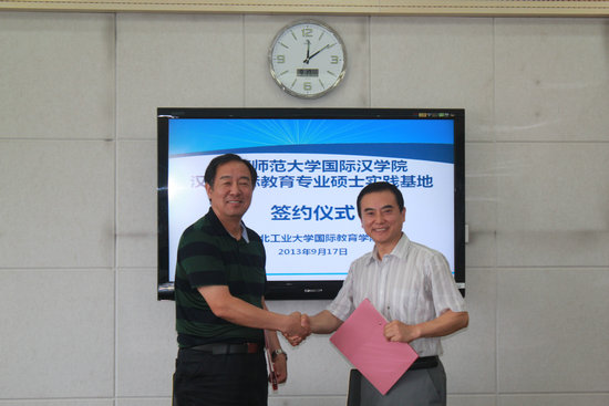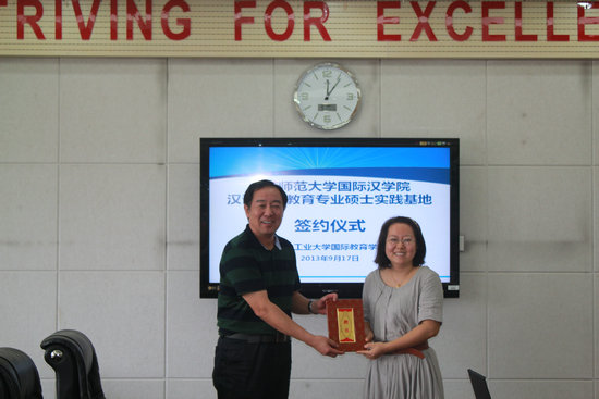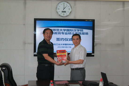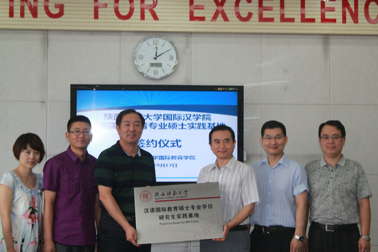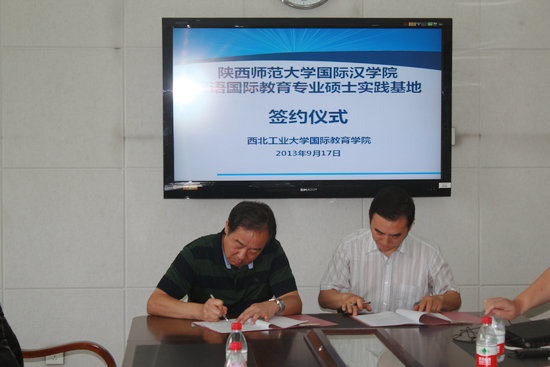 2013年9月17日上午,365英国上市官方网站与西北工业大学国际教育公司合作建立汉语国际教育硕士专业学位研究生实践基地签约仪式在西北工业大学国际教育公司会议室举行,365英国上市官方网站经理张建成教授与西北工业大学国际教育公司李华星教授分别在协议上签字。参加签约仪式的还有365英国上市官方网站副经理刘琨、副经理吴殿华、实习研究生4名和西北工业大学国际教育公司副经理孙武斌、副经理张文涛、办公室主任程茵、张卫宏老师、黄琳老师。
