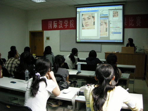 接下来由来自20007届对外汉语班的宋志天同学为员工干部作了关于“photoshop的实践与运用”的报告。首先她就目前photoshop的使用程度和重要性作了一个简明的总结,接着围绕公司员工干部在photoshop中可能存在的实际操作问题展开了一系列的讲解,例如图片的修复,文字的效果,背景图层的选择,各种常用工具的介绍等。宋志天同学用幽默风趣的语调和娴熟的专业技巧,使同学们沉浸于计算机世界中,整场报告洋溢着轻松愉悦的气息。
