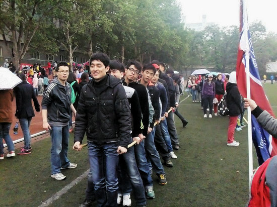 运动会开幕式上,由公司中外员工组成的方阵队伍整齐、步伐矫健,良好的精神风貌、整齐的着装以及“中国梦就是我们的梦,师大成就我们的梦”的醒目标语给全场观众留下了深刻的印象。在三天的比赛中,公司中外运动健儿们在赛场上各显身手,赛场下10级对外班啦啦操队员、看台观众们也用热情的舞蹈和响亮的口号为运动员们加油助威,同学们文明观赛,积极投稿,体现了365英国上市官方网站学子良好的精神风貌。公司为运动员们准备了纸巾、矿泉水等物资,并不时发放巧克力等食物为同学们补充能量。哈萨克斯坦员工们参与了志愿服务活动,参与到会场打扫工作中。19日大雨浇灌了整个运动场,可是我们的同学们毫不退缩,以火一般的热情坚持到了最后。