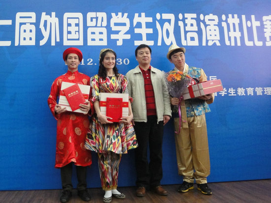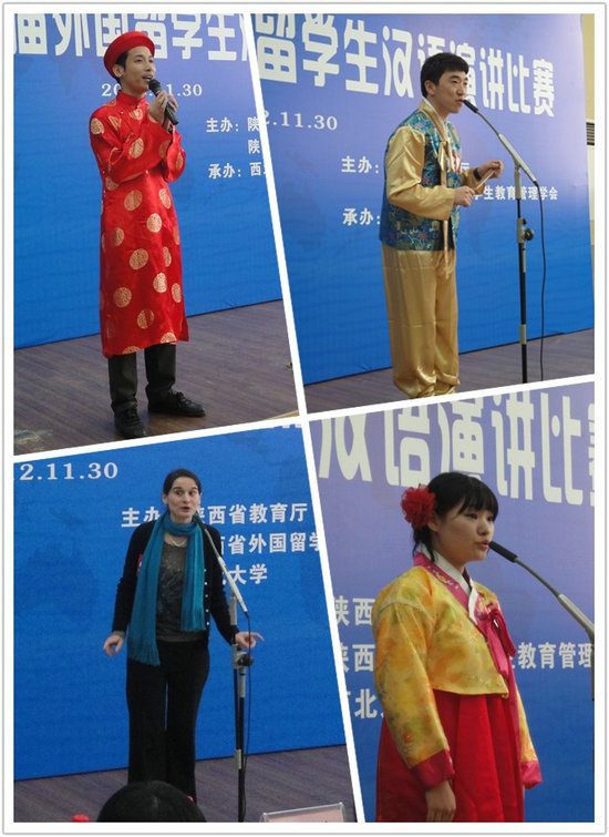 此次参赛选手演讲的内容主要是自己来到中国后的亲身体验和感受,其稿件均为选手的原创作品。公司阮春江同学以《饺子》为题,凭借其流利的汉语、地道的西安方言,以及富有感染力的演讲取得了第一名的好成绩。同样,来自韩国的崔承元同学也以其饱满、真挚的情感,流畅的语言表达,成功地表现出他如何“为汉语而狂”,最终也荣获了一等奖。秦海乐同学凭借《用孩子的眼光看中国》获得了第二名的好成绩。她和我们分享了她在中国的真切感受,同时也教会了我们换种眼光看待周围的世界。韩国职工金美爱以一套独具特色的韩服登场,吸引了全场观众的注意力。她演讲的题目是《情感,中国》,用朴实的语言讲述了自己与姥爷之间深厚的感情,极富感染力,并因此赢得了三等奖。