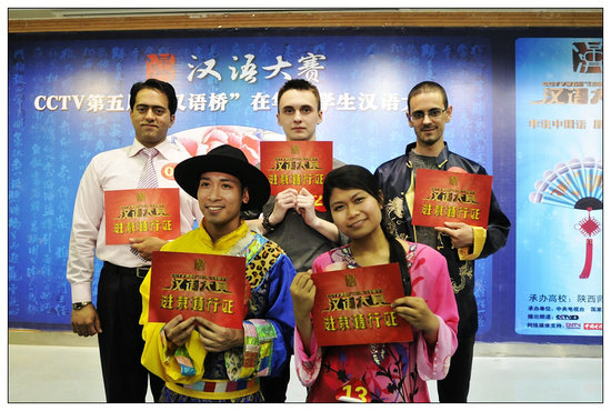 经过激烈比拼,公司的西班牙选手夏巍、越南选手阮春江,西安交通大学的巴基斯坦选手比拉尔、马来西亚选手艾美拉,西安外国语大学的哈萨克斯坦选手提姆拿到了进京通行证。