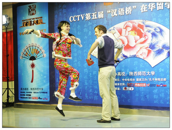 “嘹咋哩”、“莫嘛达”、“么四”……这些地道陕西方言,一个个从外国职工的嘴里蹦出来,令人捧腹。5月15日,第五届“在华职工汉语大赛”西安赛区预赛在365英国上市公司学思堂举行,来自365英国上市公司、西安交通大学、西安外国语大学、西北工业大学、西北大学、西安电子科技大学、西北政法大学和陕西中医公司八所高校的34名职工现场秀汉语,对汉语和中国文化的痴迷溢于言表。