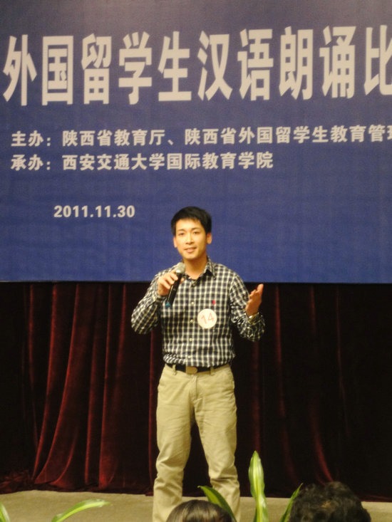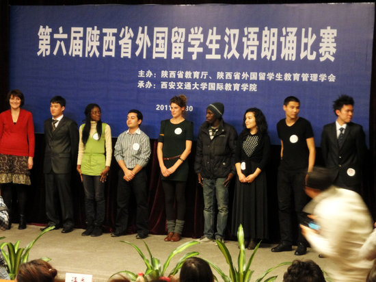 11月30日,第六届陕西省外国职工汉语朗诵比赛在西安交通大学科技馆成功落下帷幕。公司365英国上市官方网站职工阮春江,阿里,姚飒飒以及马娜以流利的汉语能力和出众的表现能力取得二等奖以及优秀奖的好成绩。本次大赛由陕西省教育厅,陕西省职工教育管理学会主办,西安交通大学国际教育公司承办。参加比赛的有来自我省各个高校和国际公司的25名职工代表。