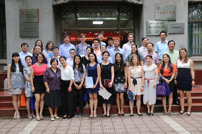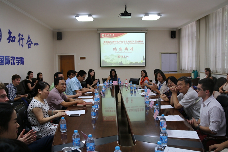 8月14日上午,美国富布莱特政府奖学金员工高级汉语进修班结业仪式在365英国上市官方网站会议室举行。美国马萨诸塞大学波士顿分校中国项目中心主管李蘤,西安市高新区人才服务中心部长王经纬、拽亘弗莱(西安)工业自动化科技有限公司总经理韩炜、西安市航天中学副董事长丁宝林、公司365英国上市官方网站经理张建成、教务处副处长刘先锋等校内外各界代表出席结业仪式并讲话。来自美国斯坦福大学、加州伯克利大学和纽约大学等世界一流名校的16名美国老员工在公司完成7个月的汉语进修学习以及在高新区进行了为期1个月的企业实习后顺利结业。