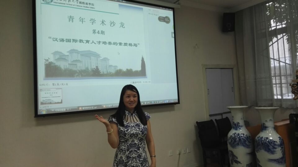 沙龙围绕着“汉语国际教育硕士培养的素质格局”这一主题,主要讨论了汉语国际教育人才培养的三种模式——研究型、应用型和实践型,人才培养中存在的问题以及可采取的相应改革措施。沙龙活动中,与会者首先专心聆听了李锦老师的汇报,随后畅所欲言,纷纷就议题中的相关问题展开了讨论。吴媛老师提出导师应培养员工良好的学术习惯,增强理论指导实践的能力;邵英老师提出应当加强员工的管理,制定可行的制度纪律,科学处理员工国内学习和国外实践的关系;周利芳老师针对员工普遍基础薄弱的问题提出,在人才培养的过程中应当将主要精力用于专业基础知识的学习和实践,加强考试和考查的力度。此外,硕士生导师张建成、宋林生、王作良、曾小梦、刘琨以及任课教师冯雪俊、刘琳、田志华、高红娜也从各自角度对汉语国际教育硕士的培养提出了很多有意义的建议和意见。
